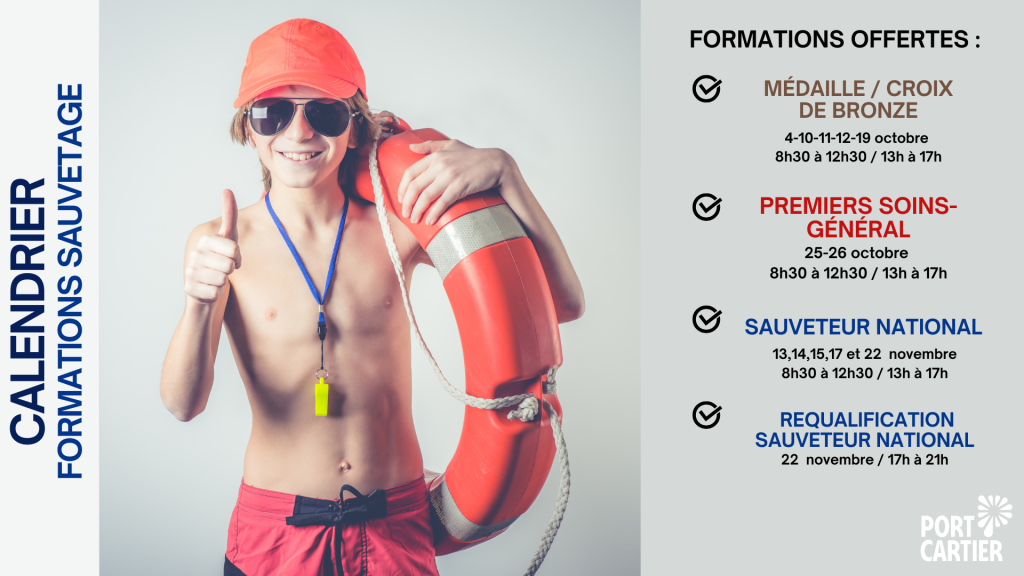 Nous t’offrons la possibilité de compléter les formations requises. Pour t’inscrire ou obtenir des réponses à tes questions, contacte notre responsable aquatique :
