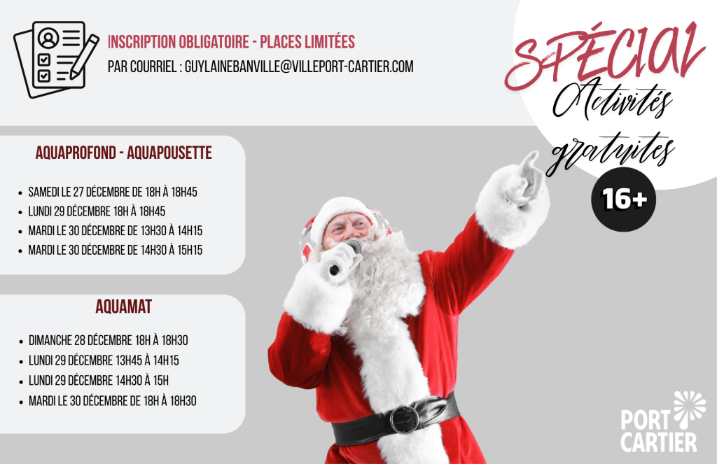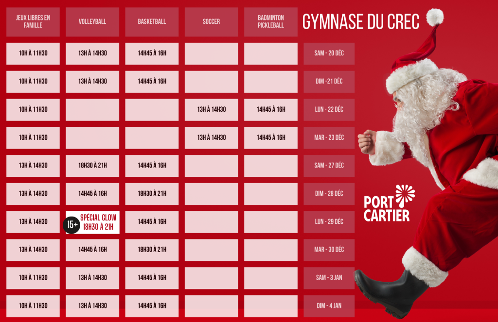 Les activités dites « libres » se déroulent dans nos installations municipales. Elles sont ouvertes à tous et offertes GRATUITEMENT par la Ville de Port-Cartier à chaque saison (à l’exception de la salle de conditionnement physique qui est sous la gestion d’un OSBL).
